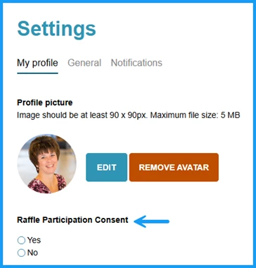New Members: As part of creating your profile, you’ll see a prompt asking if you’d like to opt in to raffle participation. Simply choose Yes or No during sign‑up. You can update your selection at any time.